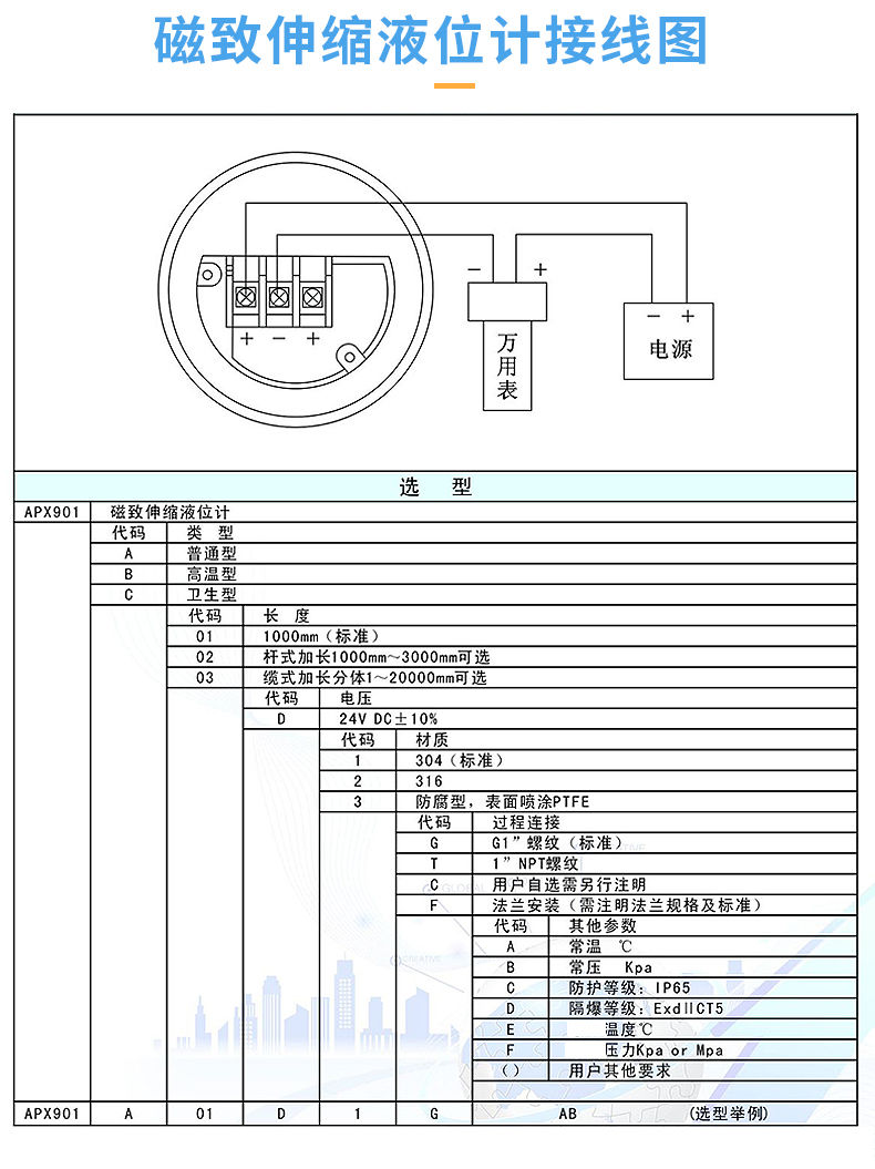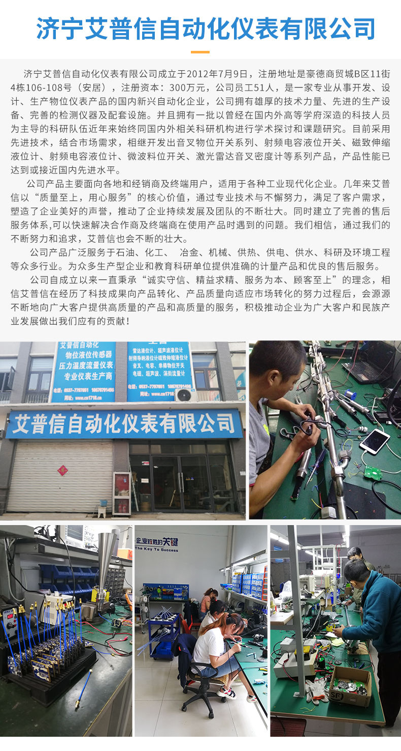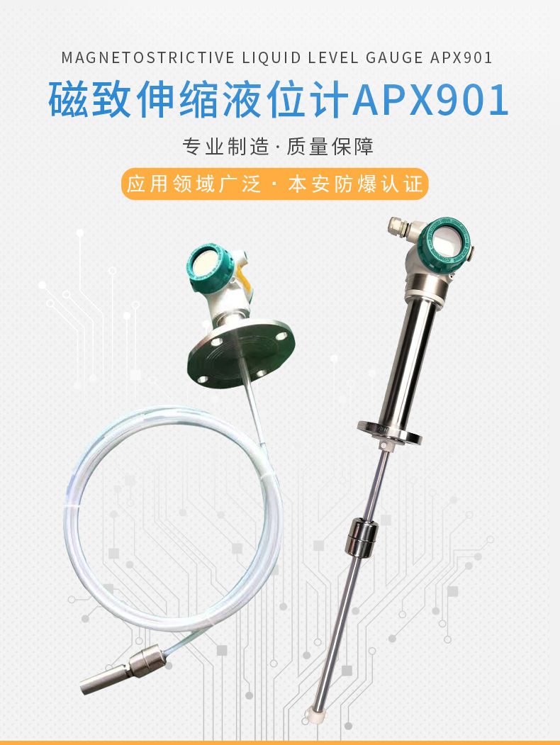 濟(jì)寧艾普信自動(dòng)化儀表有限公司自主研發(fā)的高精度APX901磁致伸縮液位計(jì),滿足了各個(gè)工況現(xiàn)場的需求,隨著科學(xué)技術(shù)的迅猛發(fā)展,高新技術(shù)在各行業(yè)中得到了廣泛的應(yīng)用,高科技含量的APX901磁致伸縮液位傳感器,應(yīng)用于各類儲罐的液位測量。該種液位計(jì)具有高精度、環(huán)境適應(yīng)性、穩(wěn)定性、可靠強(qiáng)、安裝方便等特點(diǎn)。因此,廣泛應(yīng)用于石油、化工等液位測量領(lǐng)域,并逐漸取代了其它傳統(tǒng)的傳感器,成為液位測量中的精品。