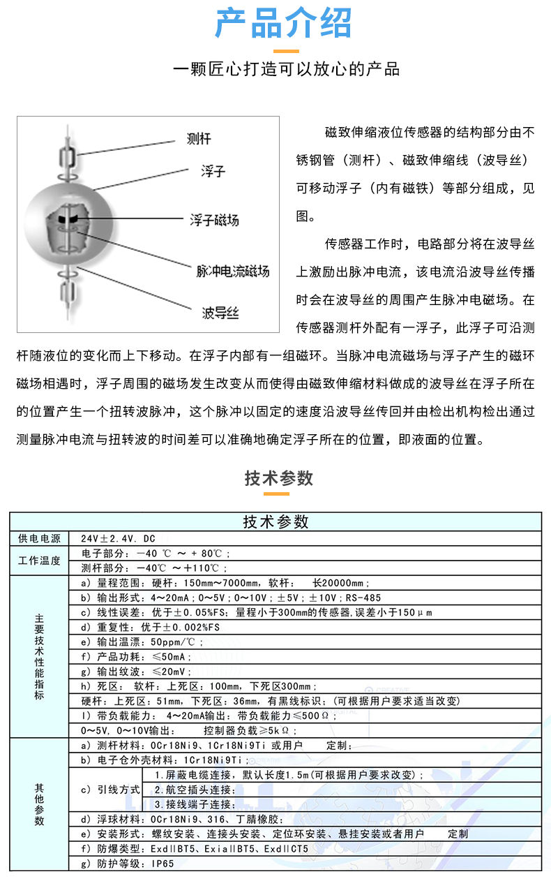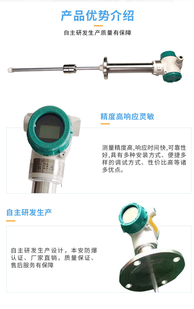 1.可靠性強(qiáng):由于磁致伸縮液位計(jì)采用波導(dǎo)原理,無機(jī)械可動(dòng)部分,故無摩擦,無磨損。整個(gè)變換器封閉在不銹鋼管內(nèi),和測量介質(zhì)非接觸,傳感器工作可靠,壽命長。