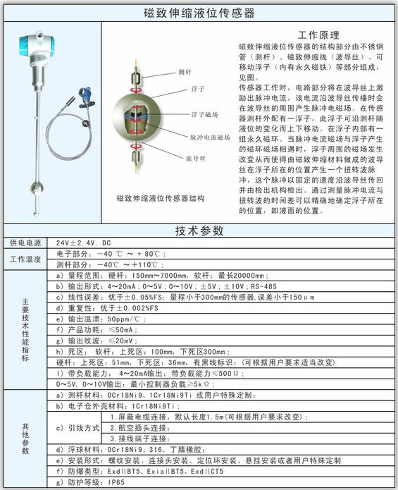 濟(jì)寧艾普信自動(dòng)化儀表有限公司自主研發(fā)的高精度APX901磁致伸縮液位計(jì),滿足了各個(gè)工況現(xiàn)場(chǎng)的需求,隨著科學(xué)技術(shù)的迅猛發(fā)展,高新技術(shù)在各行業(yè)中得到了廣泛的應(yīng)用,高科技含量的APX901磁致伸縮液位傳感器,應(yīng)用于各類儲(chǔ)罐的液位測(cè)量。該種液位計(jì)具有高精度、環(huán)境適應(yīng)性、穩(wěn)定性、可靠強(qiáng)、安裝方便等特點(diǎn)。因此,廣泛應(yīng)用于石油、化工等液位測(cè)量領(lǐng)域,并逐漸取代了其它傳統(tǒng)的傳感器,成為液位測(cè)量中的精品。