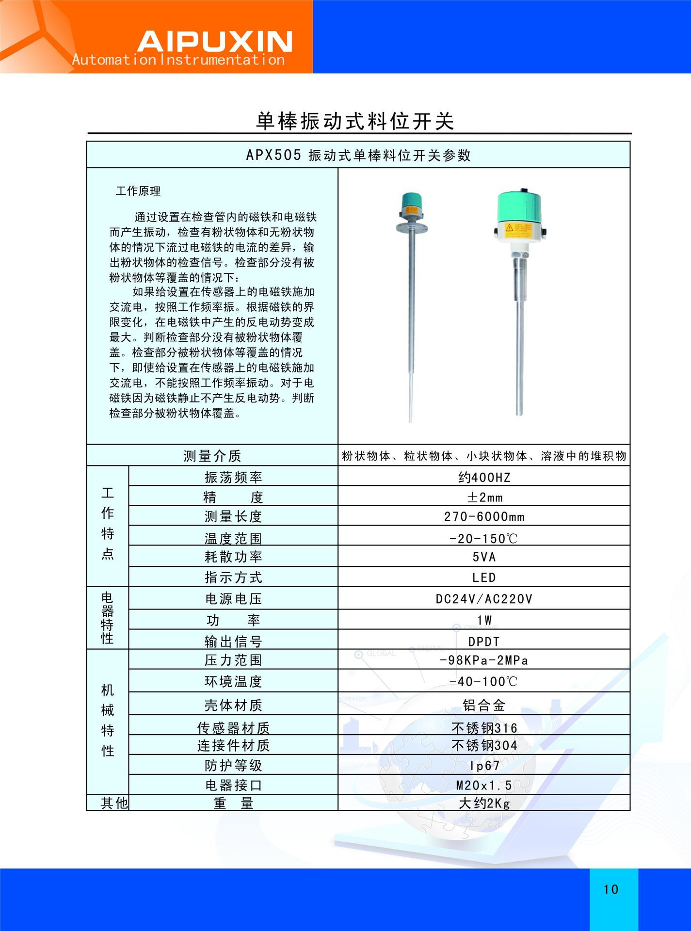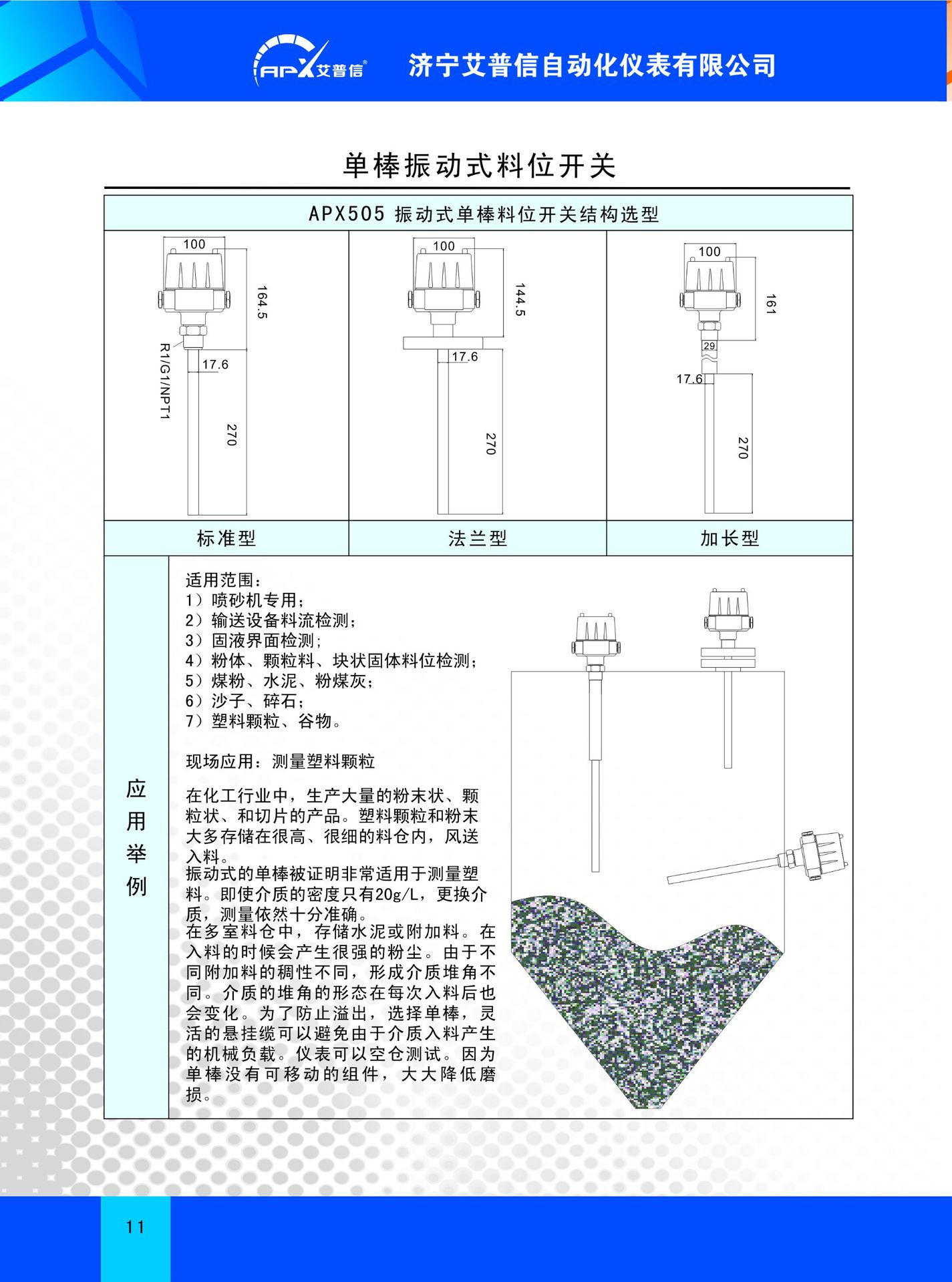 標(biāo)準(zhǔn)型單棒料位開(kāi)關(guān)APX505 遼寧專(zhuān)業(yè)儀器儀表生產(chǎn)廠家