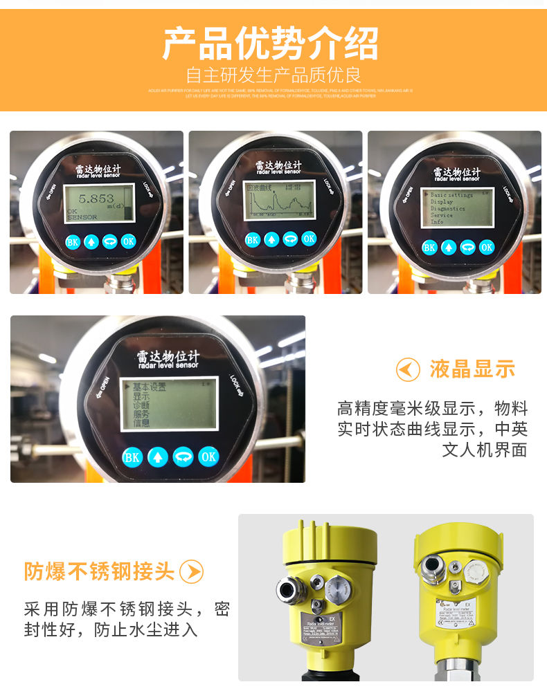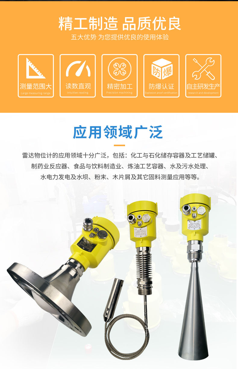 5、采用了先進的微處理器和獨特的EchoDiscovey回波處理技術(shù),高頻雷達物位計可以應(yīng)用于各種復(fù)雜工況。采用脈沖工作方式,高頻雷達物位計發(fā)射功率極低,可安裝于各種金屬、非金屬容器內(nèi),對人體及環(huán)境均無傷害。