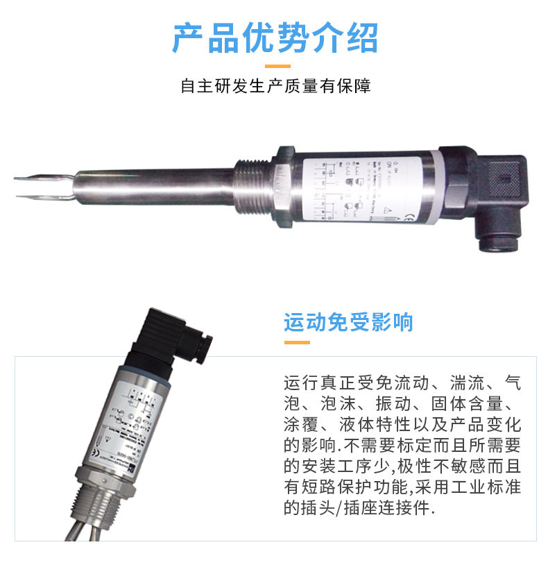 選擇音叉的固有頻率(約1300Hz),一防止受到設(shè)備振動的干擾,這種干擾可能引起錯(cuò)誤的開關(guān)動作,音叉的長度較短從而使伸入容器或管道的長度達(dá)到最短,由于該產(chǎn)品的設(shè)計(jì)采用短音叉技術(shù),因此實(shí)際上可用于所有液體應(yīng)用場合。大量的研究已使音叉設(shè)計(jì)達(dá)到最高的運(yùn)行頻率,從而使該產(chǎn)品適用于所有的液體,包含涂覆液體(消除音叉粘連搭接)、充氣液體和漿液。