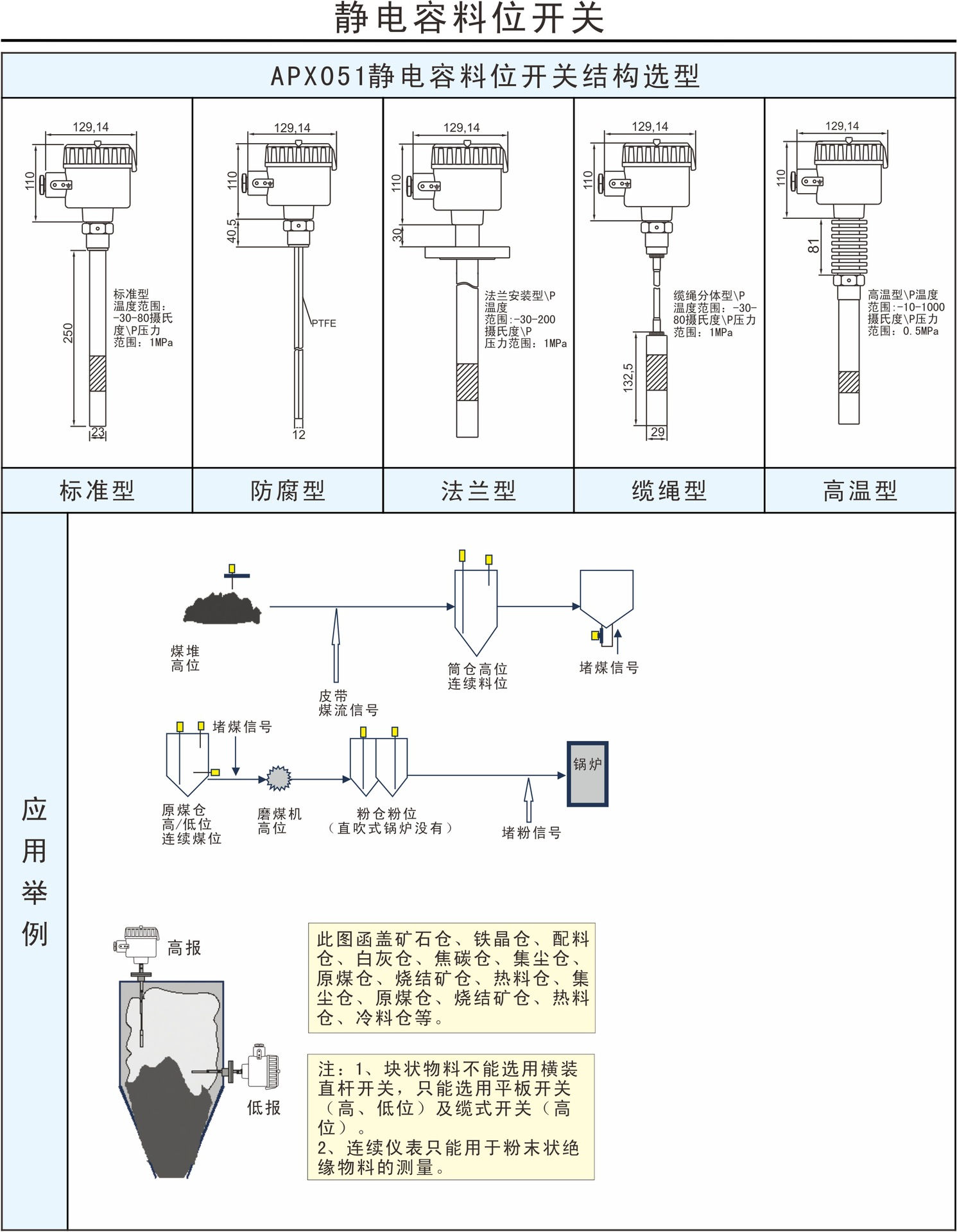 靜電容式料位開關(guān)通過檢測介質(zhì)的導(dǎo)電率或絕緣率決定是否有介質(zhì)或空氣存在。以靜電容式料位開關(guān)及其所處的介質(zhì)(液體或空氣)之間形成電容為基準(zhǔn)。當(dāng)靜電容式料位開關(guān)的探頭尖端浸入液體時,電容量變化極大,進(jìn)而形成開關(guān)狀態(tài)的改變,來達(dá)到指示與控制液位的目的??蓪K狀、顆粒狀、粉末狀及液態(tài)物料料倉的料位及液位進(jìn)行控制或上、下限位報警,適用于高溫、高壓、強腐蝕、多粉塵的惡劣環(huán)境;在冶金、石油、化工、輕工、煤炭、水泥、糧食等行業(yè)中應(yīng)用廣泛。