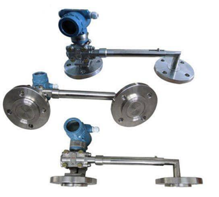 現(xiàn)場安裝密度計時必須要保證兩只壓力膜盒在同一垂直面上,否則會產(chǎn)生測量誤差。為保證測量精度,差壓密度計的兩個膜片法蘭不能小于DN50,兩個受壓隔離膜片間距離大于500mm,以保證有足夠的差壓值確保密度值的精度。現(xiàn)場被測液體必須保持沒過兩個測量傳感器(隔離膜片)。