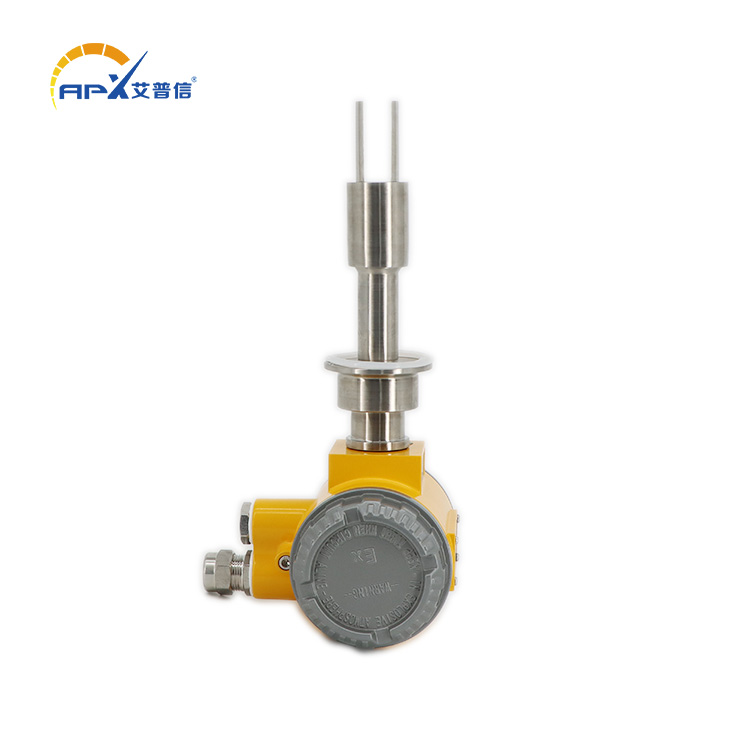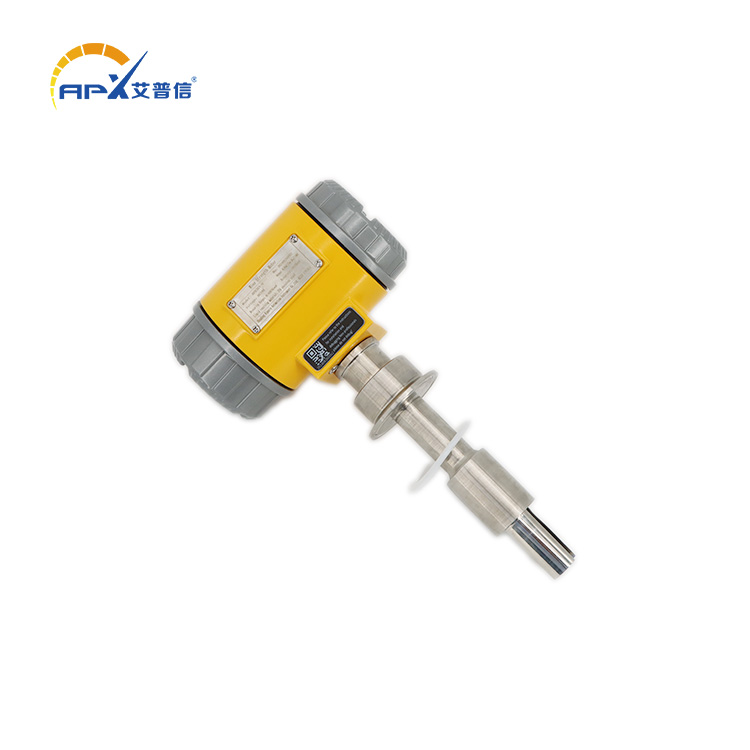 插入式密度計可實時在線的進行密度檢測。它可以運用于以密度為基本參數(shù)產品的過程控制或者以固體百分比或濃度百分比為參照質量控制。典型行業(yè)包括,石油化工行業(yè),釀酒業(yè),食品行業(yè),制藥行業(yè)和礦物加工(如粘土,碳酸鹽、硅酸鹽等),具體應用于以上行業(yè)中的多產品管道中的界面檢測,攪拌混合物的密度檢測,反應釜終點監(jiān)測,離析器界面檢測。傳感器基于元器件振動原理工作,元器件部分為浸入被測液體中的音叉部分。音叉部分通過內在的固定于叉體底部一端的壓電設備感應振動。震蕩頻率由固定于叉體另一端的二次壓電設備來檢測,然后通過頂部的電路放大信號。液體密度和被測液體流動時的震動頻率密切相關,當被測液體密度變化時,液體流動時的振動頻率也隨之改變。通過以下方程,被測液體的密度可以被精確的計算出來。