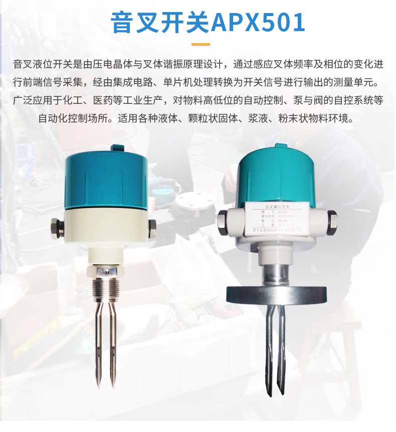 音叉開關是由壓電晶體與叉體諧振原理設計,通過感應叉體頻率及相位的變化進行前端信號采集,經(jīng)由集成電路、單片機處理轉換為開關信號進行輸出的測量單元。廣泛應用于化工等工業(yè)生產(chǎn),對物料高低位的自動控制、泵與閥的自控系統(tǒng)等自動化控制場所。適用各種液體、顆粒狀固體、漿液、粉末狀物料環(huán)境。該產(chǎn)品適應性強,穩(wěn)定性好,惡略環(huán)境亦可正常使用。一經(jīng)安裝不需維護,操作簡便,不需調(diào)校,為現(xiàn)場提供極大便利。