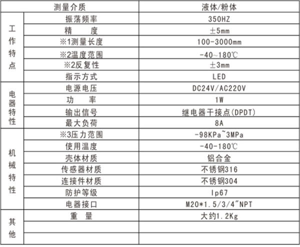 該產(chǎn)品可以對料罐的高低位進行檢測、控制和報警,適用于各種液體、粉末、顆粒狀固體。它實用簡單、運行可靠、適用性強基本上是免維護的、音叉和輸出均有工作狀態(tài),均用發(fā)光二極管指示,可依據(jù)習慣調(diào)整狀態(tài)指示,并配有三種輸入方式(直流24V、交流110V和交流220V)和多種輸出方式(直流電流輸出型、繼電器接點輸出型、直流電壓輸出型)。所有類型均有高或低故障報警模式和可選擇的儀表開關(guān)靈敏度。